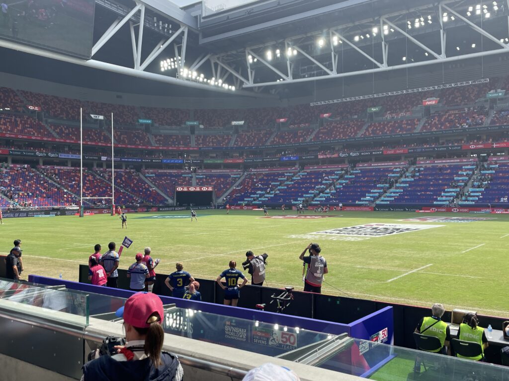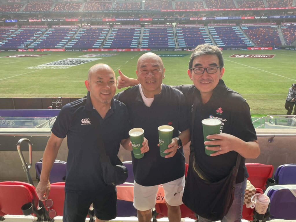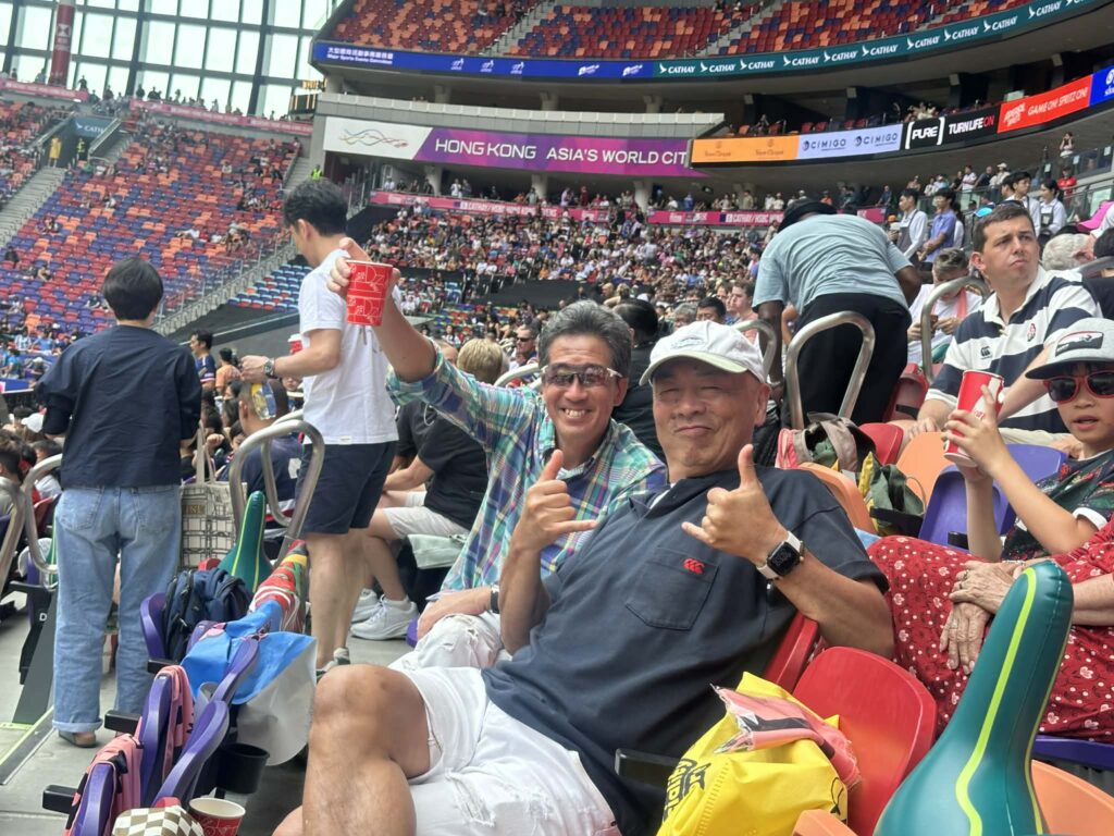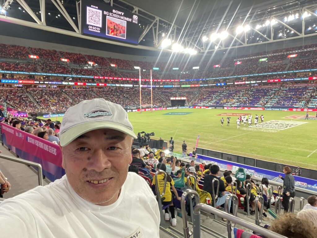 香港セブンスは啓徳スタジアムでは2回目だ。チケット代はHKD2250とすっかり高くなってしまった。僕が初めて観戦したセブンスは2012年だった。記憶では3日間通しでHKD1500だったと思う。香港在住の日本人主体のラグビークラブチーム GaiWuーJ (現Blossoms)のメンバーと一緒に2日目の土曜日早朝5時頃から入場ゲートに並んで飲みながら7時30分の開場を待ってスタジアムの最前列の席を取り合った。楽しい思い出だ。今年は7時半の開場前に並んだのは友人2人だけだった。それでもスタジアムメインスタンド中央で楽しく観戦できた。素敵な出会いもあった。西洋人のご夫婦が席を探して僕らが確保している席のところまでやってきた。周りは香港人のキッズチームの父兄が一面を抑えていた。奥様のほうが悲しそうな顔で諦めた様子で引き揚げようとしていた。あとから続いてきたご主人に「How many?」と声をかけると「Two」とのこと、「Please」と最前列の席を指さすと「Okay?」と嬉しそうに感謝してくれた。午後になって体格のいい女性がご夫婦のところにきて座った。Great Britain の代表ユニフォームを着てる。そうだったのか!後から聞いたら娘が代表に選ばれて初めて香港までやってきたそうだ。Instagramで繋がることが出来た。