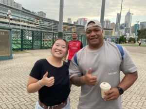 それでも僕はこのチームが大好きだ。友人が何人もいる。PR SUNIA FAMEITAU、PR FAIZAL SOLOMONA、LO KYLE SULLIVAN、 No.8 LUKE VAN DER SMIT、 WTB GUY SPANTON、試合の後もバックスタンドの最前列で応援しているところまできて握手してくれた。頑張れぇ~香港!心からエールを送るよ。